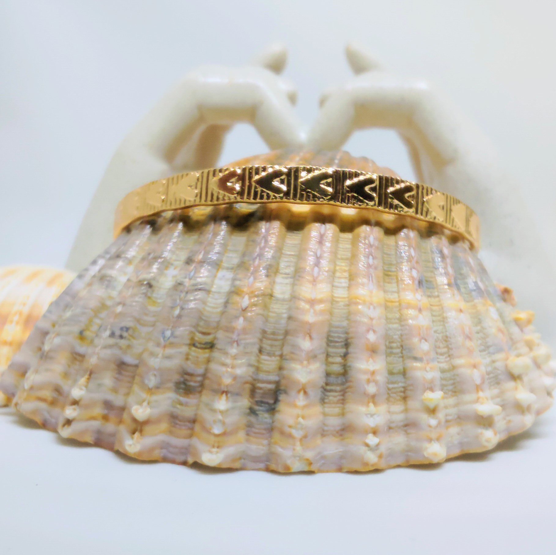 Brielle – Gold Tone Open Cuff Bracelet with Engraved Hearts