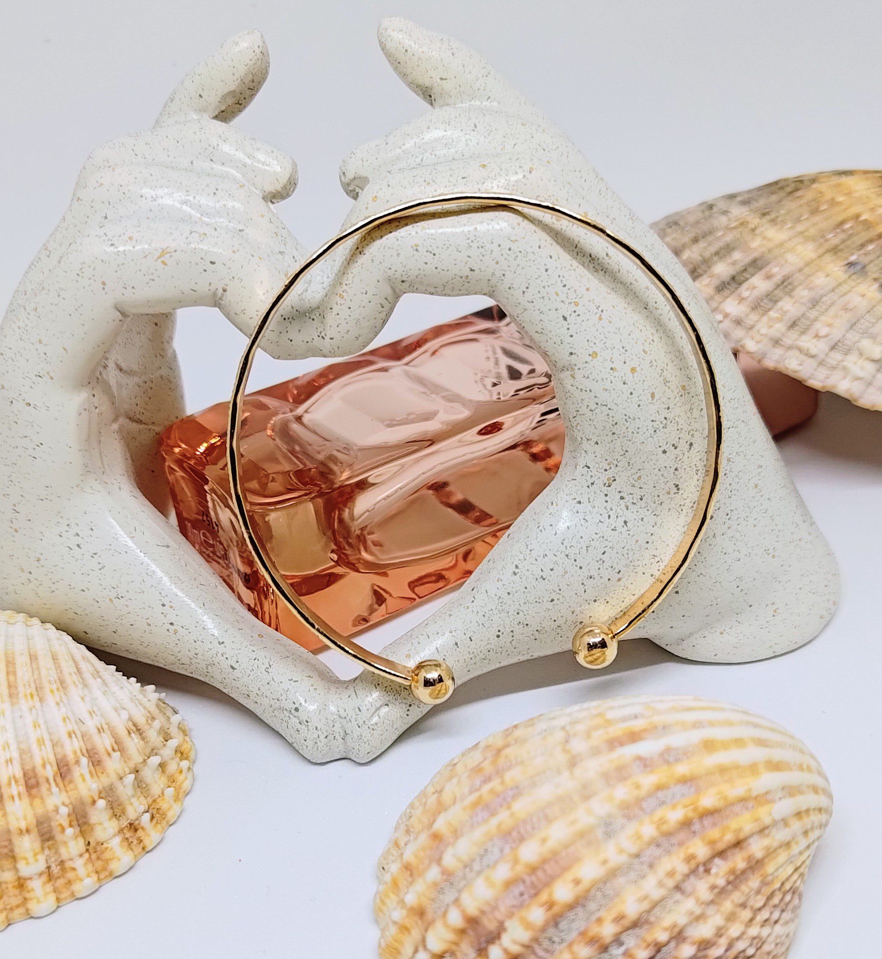 Weighing just 6.40 g, Brielle feels solid yet lightweight, making it perfect for all-day wear. The structured cuff is easy to style—wear it alone as a statement piece or layer it with finer bracelets for a balanced, elegant look. Its warm gold tone and repeating heart motif make it ideal for both casual outfits and more polished ensembles.